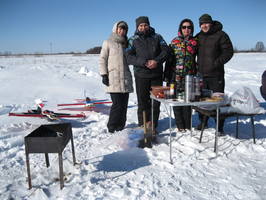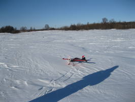 второй заход был удачным. Юра потоком от винта раздувал снег в висе, жаль на фото не видно,красиво. а я облетал очередной самодельный винт, неплохо. Владимир Иванович спасибо за образец!