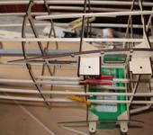 Чтобы с фотографировать пришлось собирать на улице. Заодно взвесил и проверил центровку, вес достиг 5.5кг ещё килограмм полтора я думаю добавится, тяга на этом двигатели 8кг, центровка пока передняя может даже аккумулятор надо будет переносить назад.