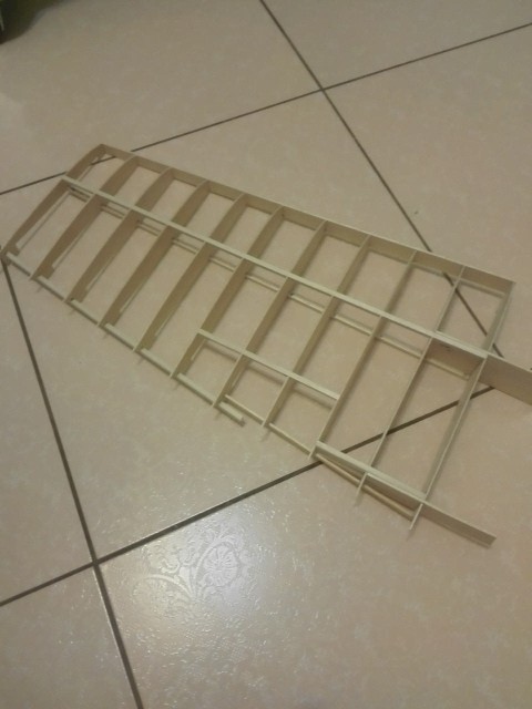 руль высоты собираеться по принципы: центральная пластинка бальзы 1мм и с обеих сторон наклеиваются треугольники нервюр. Т.о полагается обтяжка. вопрос чем: плёнка/стеклоткань/несколько слоев газеты на ПВА ?
