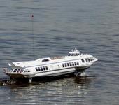 Уважаемый Федор! Здоровья Вам и успехов на воде. По фото Вашей модели мне показалось, что угол атаки носового крыла положительный и достаточно большой. Это может привести к дельфинированию. В натуре угол атаки отрицательный -45мин. кормового -50мин. Увеличте площадь рулей за счет их удлиннения почти до уровня габарита винтов. При ходе на крыльях погруженная площадь рулей маловата для маневра. У меня Метеор в м1:40. С нормальными рулями диаметр циркуляции на полном ходу был около 40 м. Удлиннил, как написано. Диаметр циркуляции 3-4м. правда проседает корма из-за потери скорости, но трассу F2 проходить уже можно. Крылья установлены по чертежу. Движение стабильное при высоте волны до 5см. Выше - начинаеются скользящие удары корпусом о гребни без видимого падения скорости. Выход на крылья со стопа через 2м.