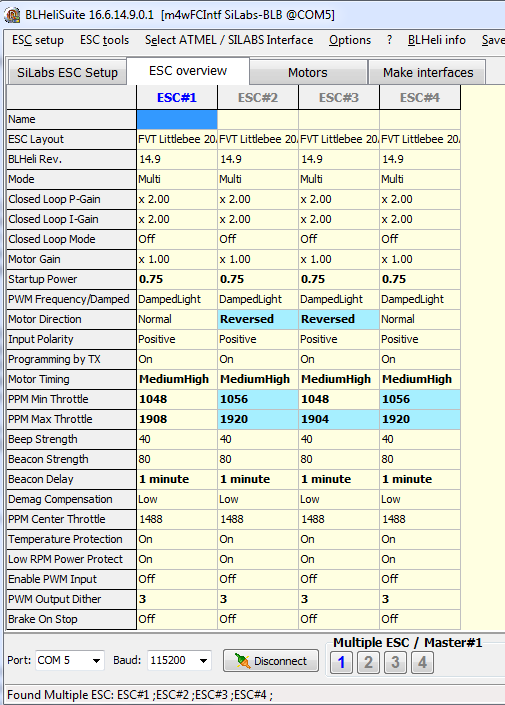 На 200 рамке можно использовать 5`пропеллеры и соответствующие моторчики 22** и 23** серий с более низкими оборотами. На РЦГрупсе жалуются что типовые недорогие (для них, у нас эти ESC входят в верхний ценовой сегмент) ESC иногда дают “рассинхронизацию” на максимальных оборотах, характерных для “мелколетов” с 4` и 3` пропеллерами при полетах в стиле “тапку в пол”, по прямым на максимальном газу. Поэтому некоторые производители даже сделали новые серии на новых процессорах Силабс 39* с индексом в названии HV.