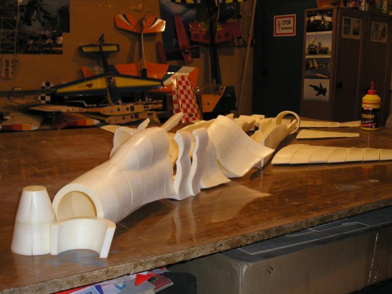 Пока он в таком виде, в дальнешем будет освещаться его постройка. Длина корпуса 180 см, размах 115см. Ориентировочный взлетный вес 1кг. Вопрос- какие импеллеры под такие антропометрические данные можно поставить, если есть у кого какие соображения прошу высказываться.