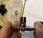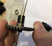 во вторых шевелится ось на которую одевается ведомая шестерня от мотора… и если эту воткнуть внутрь до упора то в определенный момент ее клинит а вот если до упора выдвинуть то крутиться свободно…