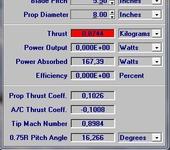 вот скрин, я попробовал посчитать тягу ASP .15 на винте TT циклон 8*5.5, обороты тахометр выдал 11950, ну я округлил до 12000
