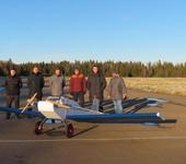 Крыло вырезано по шаблонам с выборкой внутренней части для облегчения. В качестве лонжеронов алюминиевые трубы марки Д16Т . Обшито крыло стеклотканью 0.025мм со смолой насухо пропитано.