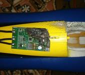 - двигатель DS 2304 1750KV, регуль DS 12А, аккум 2S 1100mAh, сервы элеронов 13г, сервы хвостового оперения 6-9г (как будет центровка, чтобы не вешать доп.груз);