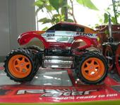 Купленна машинка в пилотаже под маркой “rally racer”. Приятна на ощупь, приятно защелкиваются детальки. Приятный звук мотора. Достаточная мощьность мотора. На 2wd по гладкой поверхности стартануть не получается - буксует. Приходится прерывисто нажимать на кнопку пульта. Слишком большой радиус поворота около метра. Небольшой радиус действия пульта около 3м. Сам пульт не с рычагами а с кнопками, после привыкания довольно удобно. На пульте есть пятая кнопка TURBO. Эта кнопка есть на самом деле на плате, но единственный эффект от неё - еле заметное изменение тональности звука мотора, если машинку держать в руках, что бы колёса на воздухе вращались. При посадке батареек первым делом отказывает мотор поворота колёс. Потребление тока около 0.7 А.