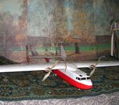 Утро, ветерок еле еле, солнце за спиной… Жуткий мандраж, еле смог собрать модель. Отец делает 2 шага и отпускает электроптиц в небо… Летит, никаких эксцессов, убрал левый крен триммером и все. Получилось очень похожее на редактированную мной модель из AFPD. Вес чувствуется. Посадка никаких проблем не вызвала, лыжа сделала свое дело(самолет просто валится на крыло после остановки). Пробег на лыже не больше 1метра. На третьем взлете допустил ошибку, стал строго за отцом(почти ничего не было видно из за его силуэта) и кроме того ветер в момент пуска поменялся на противоположный…чирк лыжей по траве и все равно в небо)) + Еще один вывод сделал для себя - на минимальной скорости эелероны не оказывают никакого влияния на крен. На скорости вполне достаточный крен. Может малы расходы(оно и к лучшему))) Задействовал РН, кренится аж бегом. Родной винт 9070 не стал ставить, поставил 1080. Мог поставить 1180(лыжа вполне позволяет) или 1047. С винтом 9070 в симуляторе модель еле-еле высоту набирала. Родной АКБ совсем не впечатлил. Добавить банок и использовать его в качестве источника для передатчика. Я использовал свинцовый 12в7а, тяжеловато держать на поясе.