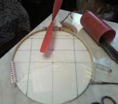 седьмое фото посмотри, на шаблоне из потолочки. Само кольцо у меня из 2 частей, передней с ватманом и задней без(самая широкая часть)