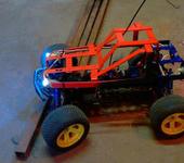 ыыы… а поскольку 540-й автомотор никто не подарил, там теперь мотор от шуруповерта и редуктор… Едет медленно, выглядит страшно, остановить нереально… Думаю кабину от грузовика и трейлер. Буду раненых вывозить с трека 😃