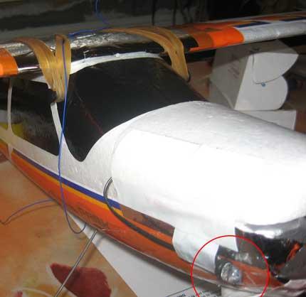 Вчера расплавился кронштейн крепления двигателя к мотораме. В полете пропеллером буквально отстрелило капот. Он эффектно упал в траву с высоты. После чего самолет перестал слушаться левого элерона и постепенно накренивался вправо. Получилось лететь только по кругу диаметром метра 4. Ветром сносило к парковке - решил экстренно сажать. Заглушил двигатель - заработали элероны. Посадил достаточно жестко в траву. При этом ни одного повреждения - даже винт не сломал.