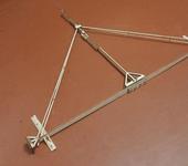 Мачту реши попробовать сделать Л-образную. Пишут, что ее преимуществом является устойчивость в поперечном сечении, и - минимальное количество вант-оттяжек. Делал ее наборной из бамбуковых шпажек. В результате мачту много раз дорабатывал - ей не хватало жесткости. Пока ферма (набор треугольников) не сделал - гнулась она во всех направлениях.