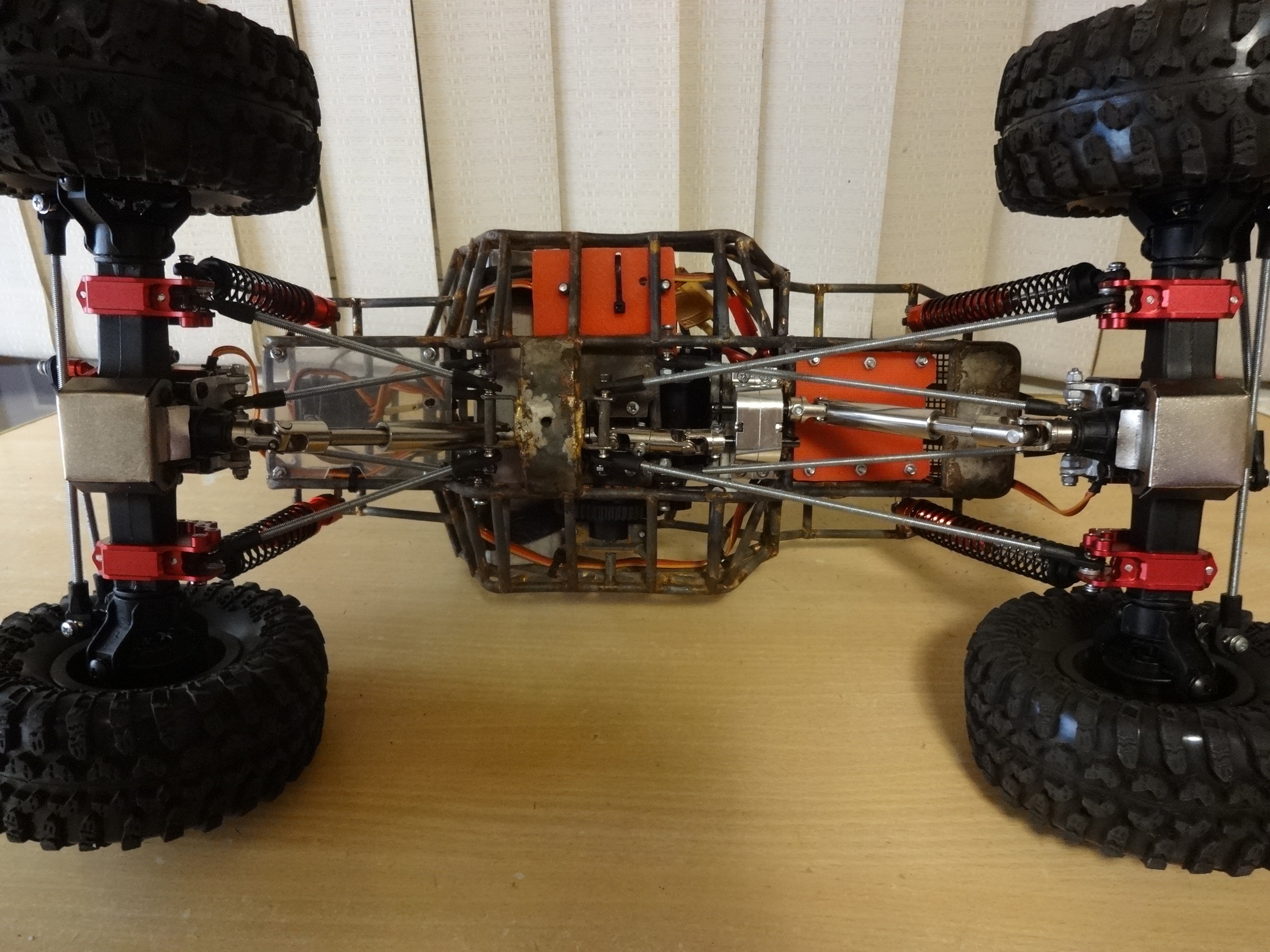 удлинённые рычаги из винипласта 14мм толщиной… амортизаторы от лося 5т… аморты на рычагах имеют 3 точки крепление… расстояние между ними по 1см…