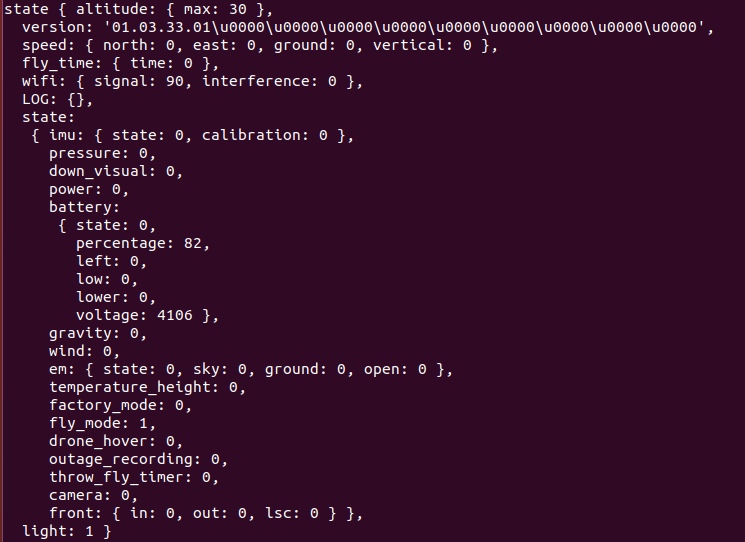 - Датчиков “препятствий” там никаких нет, но дрон сыпит много информации о себе, к примеру координаты от точки старта (X, Y, Z), данные с IMU, углы наклона, ну и видео с камеры передней