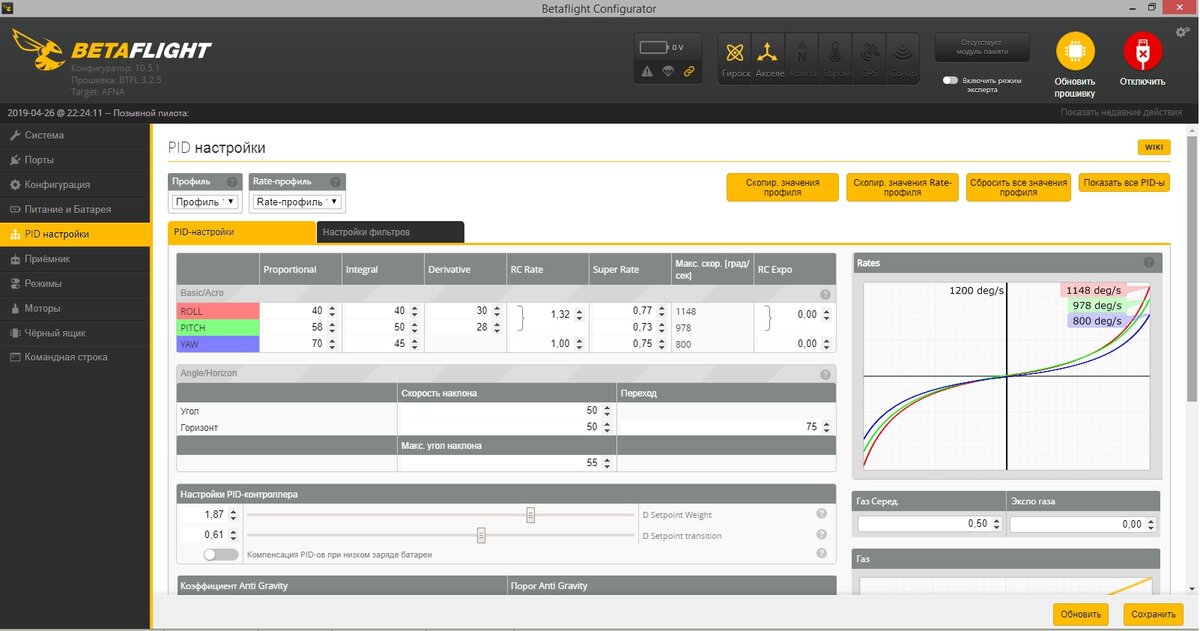 Друзья, имеется Eachine Racer 130 в стоке, не могу настроить PID’ы, помогите, какие должны быть параметры?