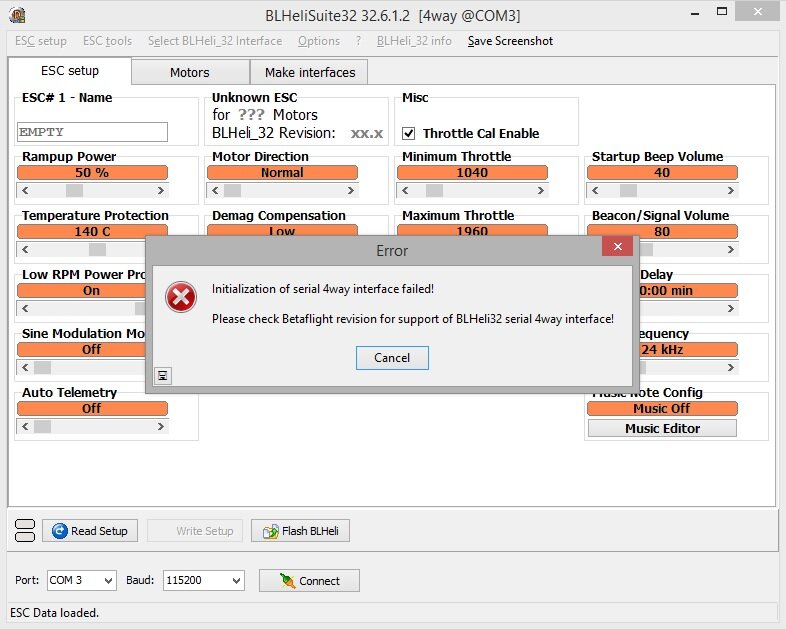 поставил прошивку betaflight 3.0.1 и получилось подключиться в blhelisuite (без 32). подскажите как откалибровать регуляторы