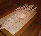 Что сейчас гадать, слепим- взвесим. Пока скелет на фото весит 200гр, а это самая тяжелая часть, она всяко больше 50% полного веса планера. Его еще облегчить можно. Но дополнительные проемы в шпангоутах я планирую вырезать только после окончательной компановки всей аппаратуры.