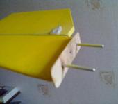 Акк располагается по ЦТ в цельном лобике углубление под него, места установки серв заштрихованы… снизу отсек с начинкой зашит лёгкой фанерой или бальзой… киль съёмный. Всё по максимуму облегчено.