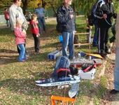 Подведу итоги первой половины дня. Отлично отходила яхта Алексея, прошли ходовые испытания яхта Геннадия и оффшор Дениса. У меня была авария - на третьем пробеге двигатель выскочил из крепления - трехлопастный винт разлетелся вдребезги.